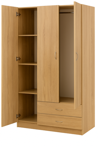 105cm Oak Storage Robe with 3 Doors & 2 Drawers