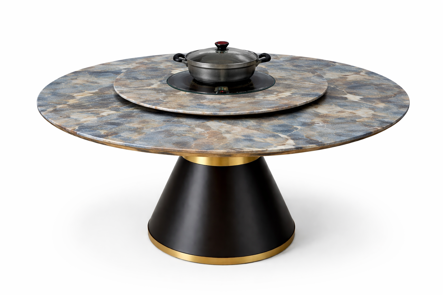 1 × Maharaja Marble Round Dining Table (1.5M) with Induction Cooker & Lazy Susan