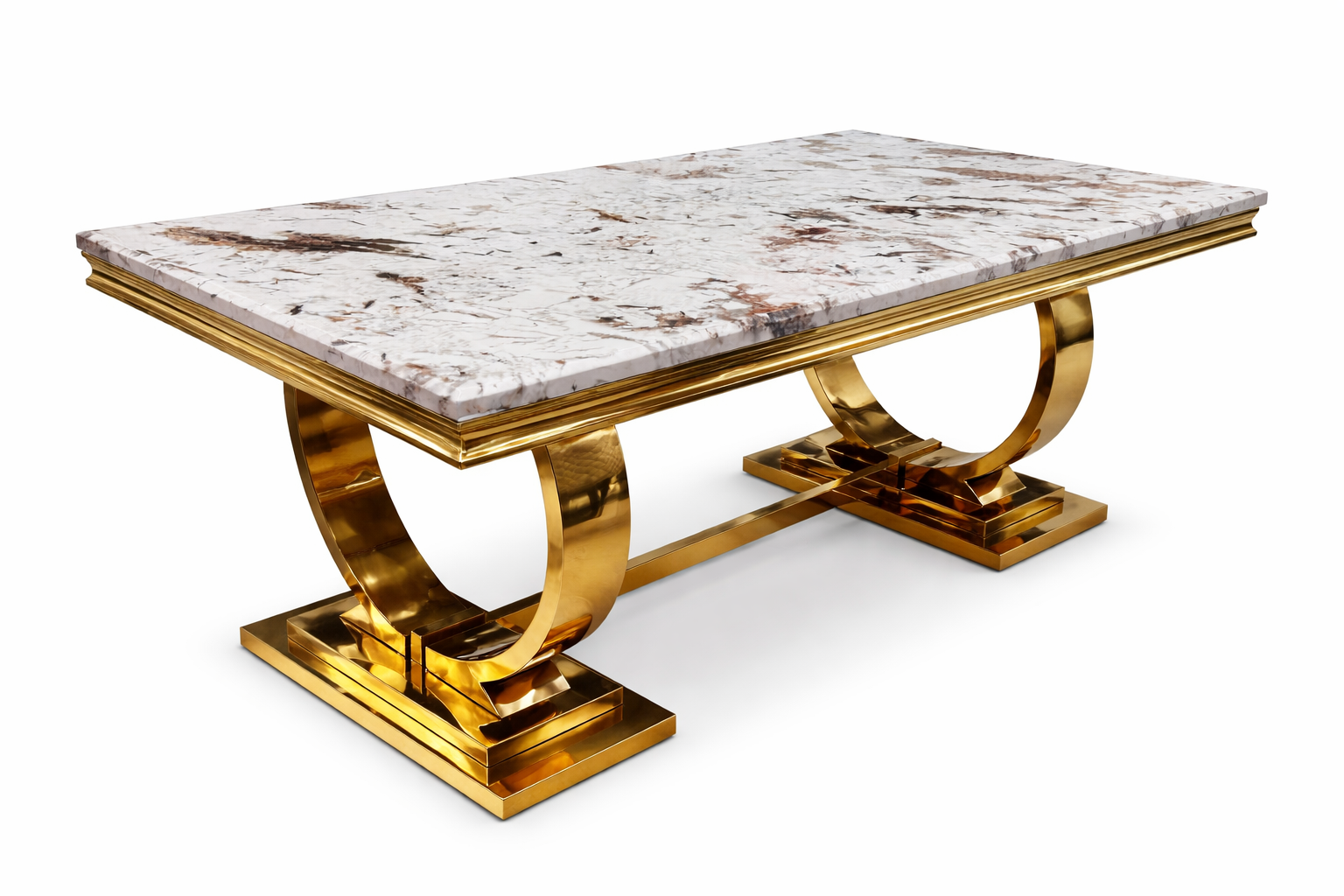 Bring timeless sophistication to your dining space with the Opera 1.6m Dining Table. Designed to host elegant gatherings and memorable meals, its refined silhouette and gold metal legs create a striking statement in any interior.