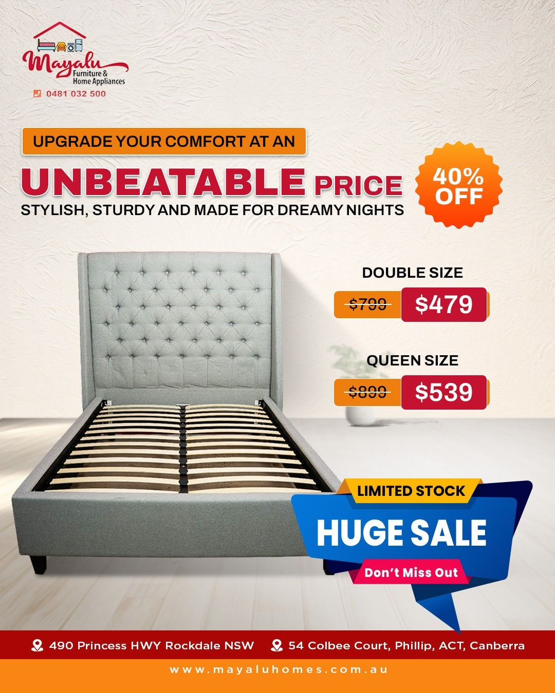 • Can accommodate mattresses of 137 x 188 cm for double and 153 * 203 cm